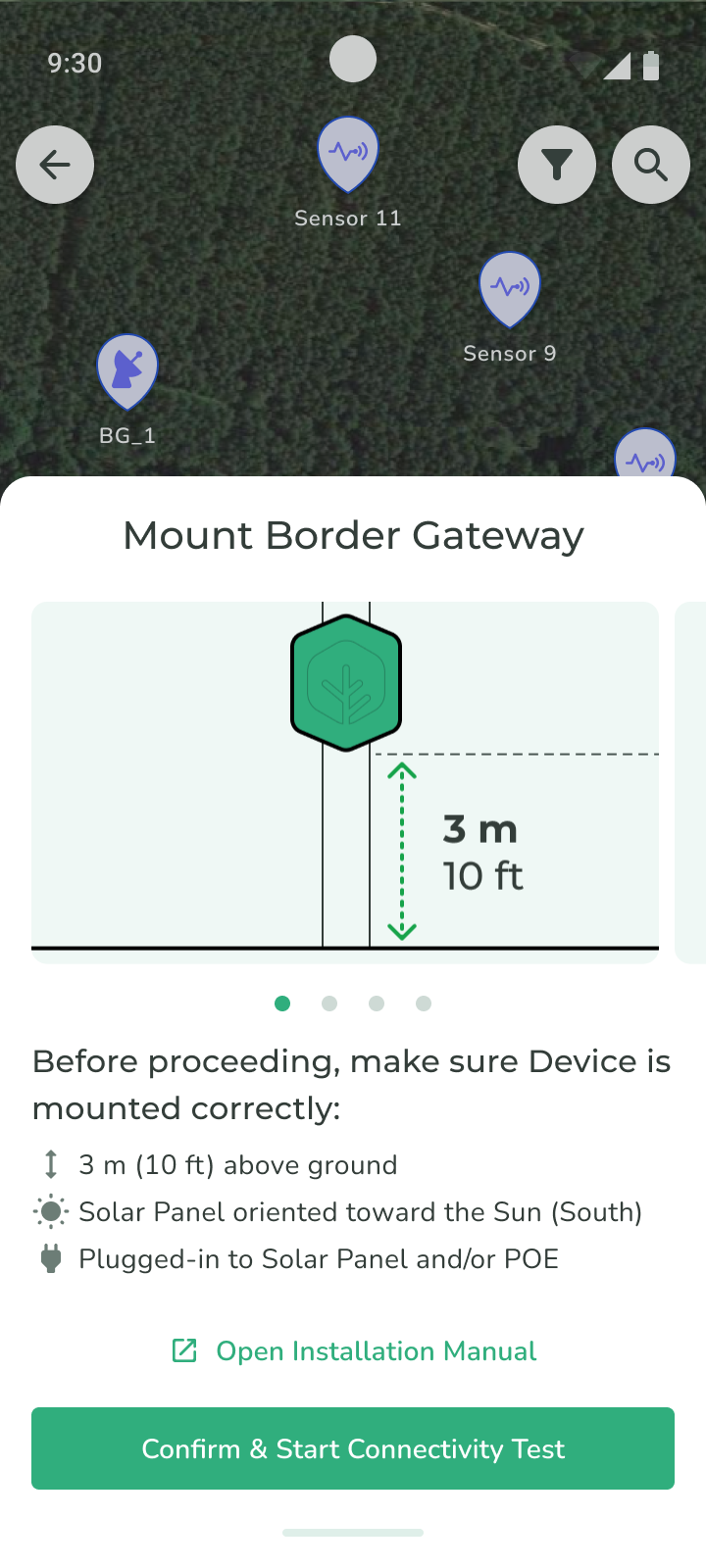 1. After mounting the Border Gateway, tap **Confirm & Start Connectivity Test**.