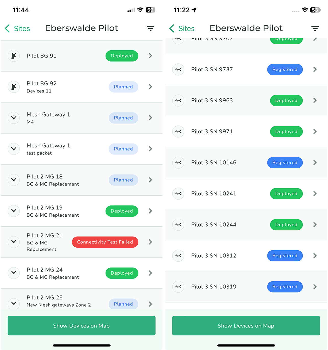 The **Device list** shows all planned and/or deployed devices for a Site.