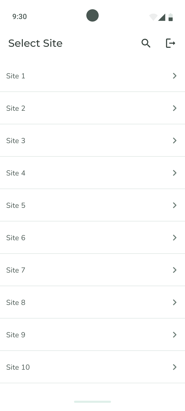 2. From the list of Sites, tap a Site or arrow to open the Site. The Site's devices appear.