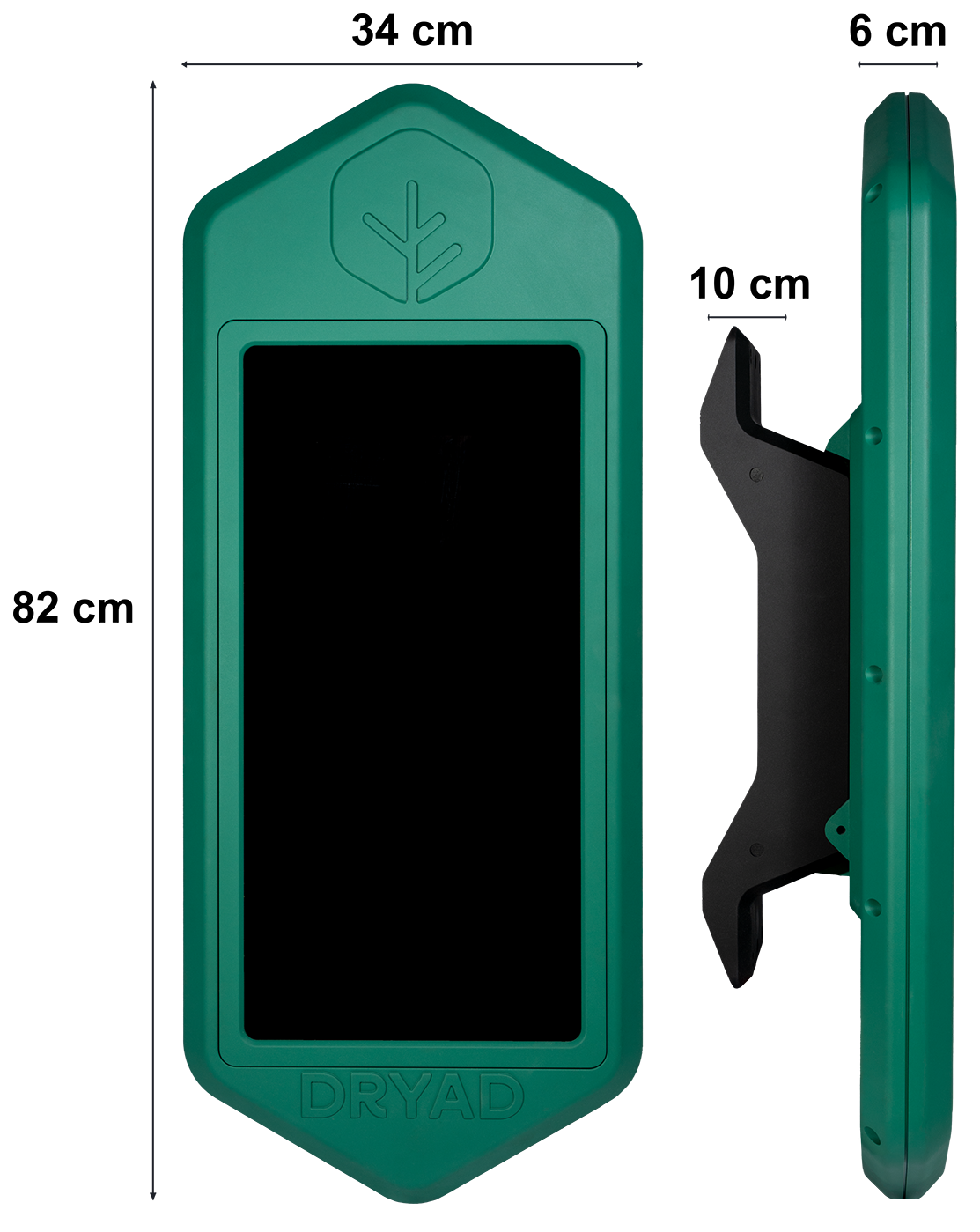 The dimensions of the Silvanet Border Gateway are (LxWxD) 82 cm x 34 cm x 6 cm (16 cm with mounting bracket) and weighs 6.8 kg (without Mounting Bracket).