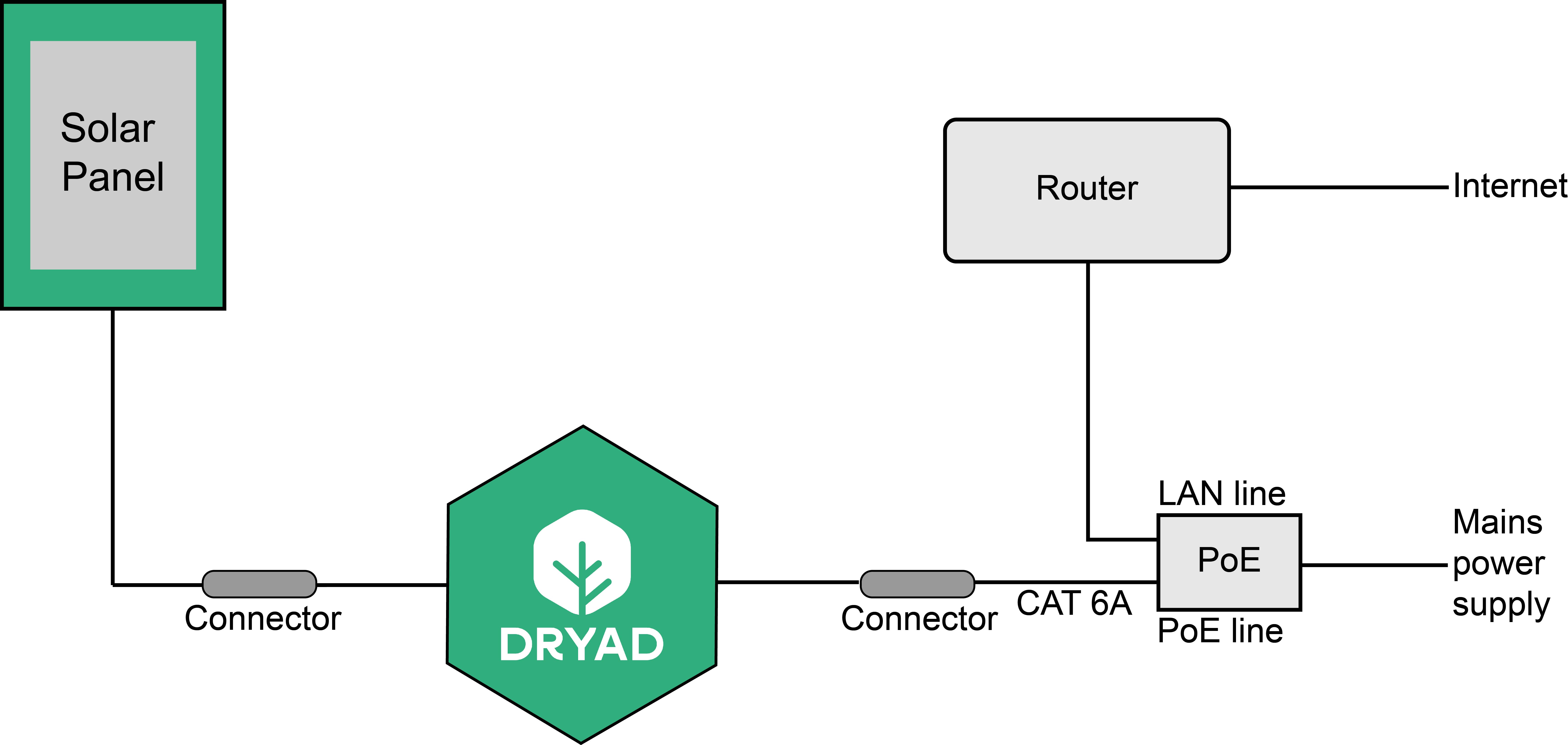 The Silvanet Border Gateway includes a PoE Injector to connect to a mains power source. If a router is available, it can be connected via Ethernet to the PoE.